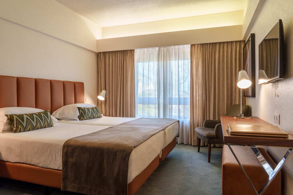 Quarto de inspiração vintage, com mobiliário em madeira e piso alcatifado. Com 2 camas separadas. Inclui amenites, minibar, máquina de café Nespresso e garrafa de vinho (consumos pagos à parte). Pequeno-almoço buffet e Wi-Fi gratuito. Acesso diário de 1 hora ao circuito de SPA (mediante reserva, uso de touca obrigatório). Tratamentos de beleza e corpo disponíveis com marcação prévia. Sem possibilidade de berço ou cama extra. Ocupação máxima: 2 pessoas. É obrigatório informar a presença de crianças/bebés no momento da reserva.